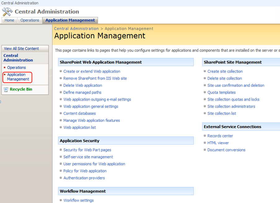 SharePoint Application Management